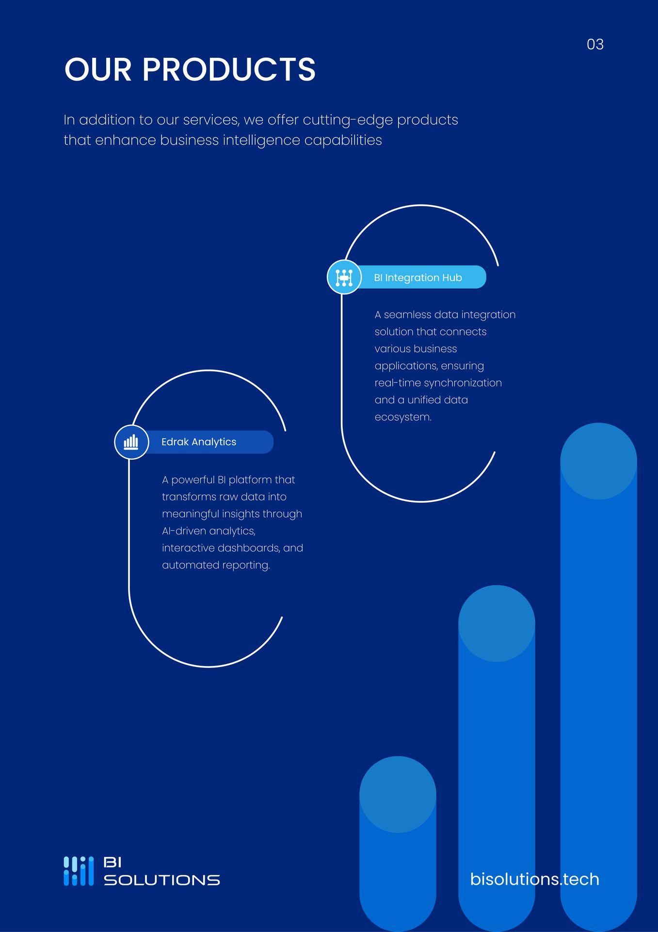 BI Solutions is a leading provider of business intelligence and technology-driven solutions, empowering organizations to optimize their operations, make data-driven decisions, and drive sustainable growth. Since our inception, we have been committed to delivering innovative, high-quality solutions that streamline business processes, enhance efficiency, and unlock valuable insights from data.